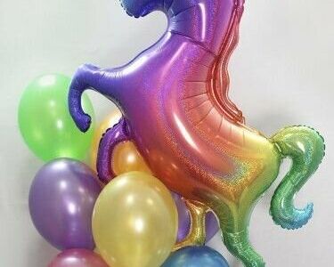 Облако из шаров яркий единорог, наполнен гелием и установлен на грузик, состоит из: