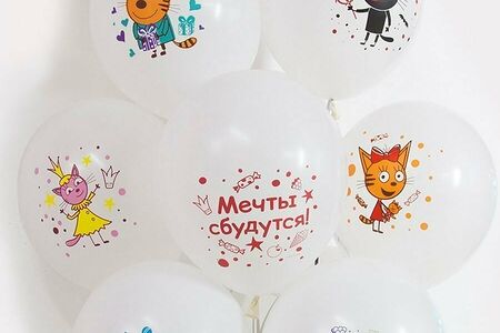 Воздушные шары с гелием Три Кота Играем вместе Белые 9шт доставка