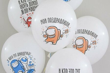 Воздушные шары с гелием Игра Среди Нас Белые 9шт доставка