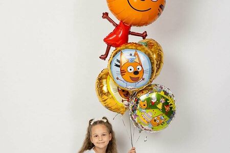 Облако из воздушных шаров с гелием Карамелька - Три кота, подарок на день рождения доставка