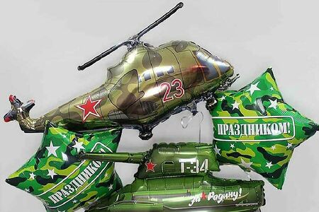 Воздушные шарики с гелием, фигура танк вертолет подарок на 23 февраля доставка