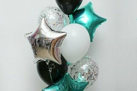 - Три фольгированных шара в виде звезд и сердец ( диаметр каждого шара 45см.)