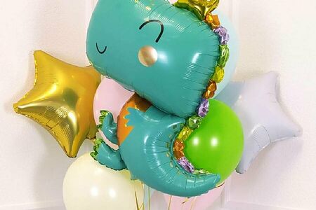 Набор надутых воздушных шаров на день рождения с фольгированной фигурой "Динозавр" доставка