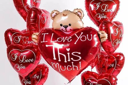 Фонтан набор воздушных шаров сердца Любовь Мишка и 10 Сердец доставка