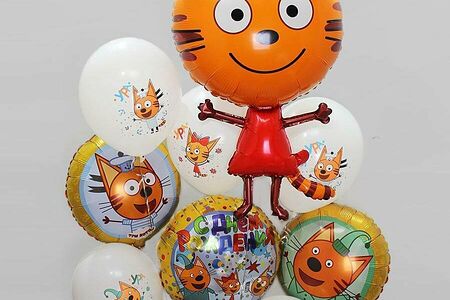 Облако из воздушных шаров с гелием Три кота, подарок на день рождения девочке доставка