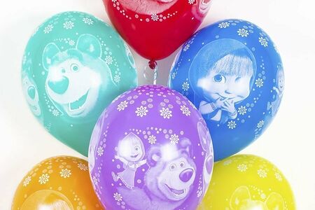 Воздушные шары с гелием Маша и Медведь Разноцветные 5шт доставка