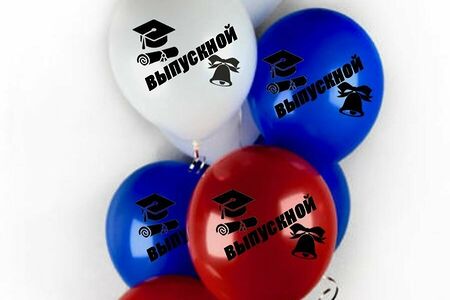 Воздушные шары с гелием на выпускной с надписью триколор 5шт доставка