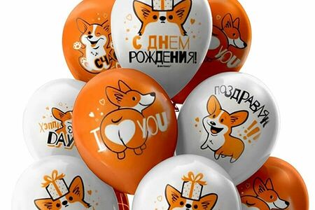 Воздушные шары с гелием С днем рождения Корги 9шт доставка