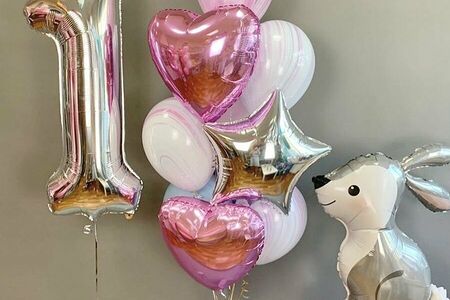 Фонтан из воздушных шаров с цифрой на годик для девочки, поставляется в надутом виде. Композиция из шаров надутых надутых гелеим, установлена на грузики и состоит из:Фольгированный шар фигура Зайка на грузике.Фольгированный шара Цифры на грузике (номер цифры на выбор)Фонтан из шаров,на грузике и состоит из:Пять латексных шаров АгатыТри фольгированных шара (Звезды и сердца)Фонтан из воздушных шаров отлично подойдет на первый день рождения девочки и украсит любое празднование - день рождения, вечеринку, утренник. Также фонтан можно заказать для фотосессии и украшения детской комнаты вашей Принцессы. Яркие, красивые, плотные шарики без постороннего запаха премиального качества несомненно порадуют вас на празднике.