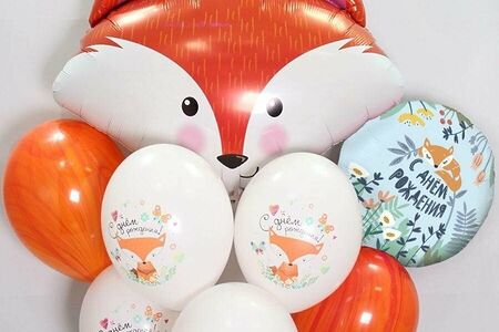 Облако из воздушных шаров с гелием с лисичкой, подарок на день рождения доставка
