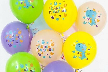 Воздушные шары с гелием Динозаврик в короне С Днем Рождения 9шт доставка