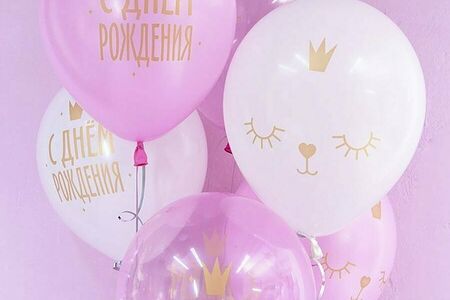 Воздушные шары с гелием Котенок принцесса с Днем Рождения 15шт доставка