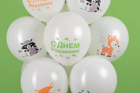 Воздушные шары с гелием С днем рождения, лесные зверята, ассорти 15 шт доставка