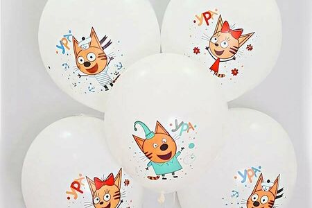 Воздушные шары с гелием Три Кота Белые 15шт доставка