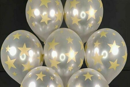 Воздушные шары с гелием Золотые звезды на белом 9шт доставка