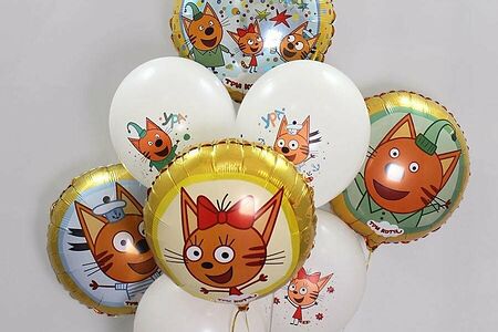 Облако из воздушных шаров с гелием Три кота, подарок на день рождения доставка