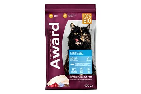 Award Sterilized сухой корм для стерилизованных кошек, с белой рыбой, клюквой и цикорием доставка