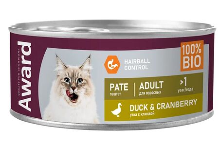 Влажный корм AWARD Adult для взрослых кошек паштет из утки с клюквой доставка