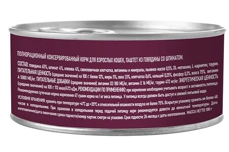 AWARD Adult Корм влаж.паштет из говядины со шпинатом д/кошек конс.100г доставка