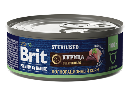 Корм влажный Brit Premium By Nature для стерилизованных кошек Курица с печенью в соусе доставка