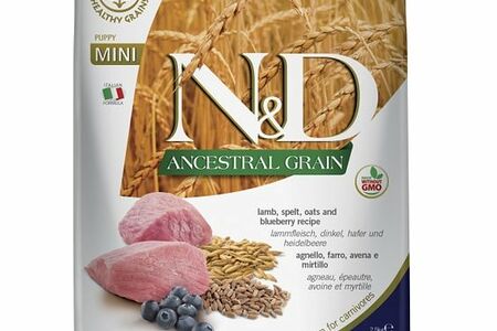 Корм низкозерновой Farmina N&d ancestral grain Lamb & Blueberry Puppy mini для щенков мелких пород ягненок и черника доставка