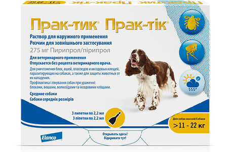 Elanco Прак-тик для собак 11-22 кг капли на холку для собак от блох, вшей, власоедов, иксодовых клещей (3 пипетки) доставка