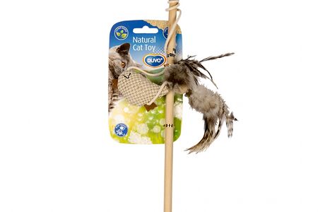 Удочка-дразнилка для кошек Duvo+ Птичка с перьями бежевая доставка
