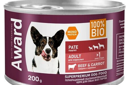 Влажный корм AWARD для взрослых собак, паштет из говядины с морковью доставка