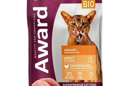 Сухой корм AWARD Urinary для взрослых кошек для профилактики мочекаменной болезни 1,5кг, курица, клюква, цикорий, рыбий жир доставка