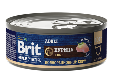 Корм влажный Brit Premium By Nature для кошек Курица и Сыр доставка