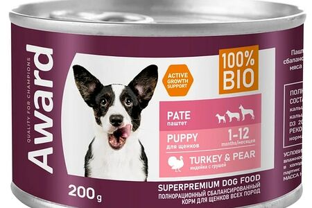 Влажный корм AWARD паштет из индейки с грушей, для щенков доставка