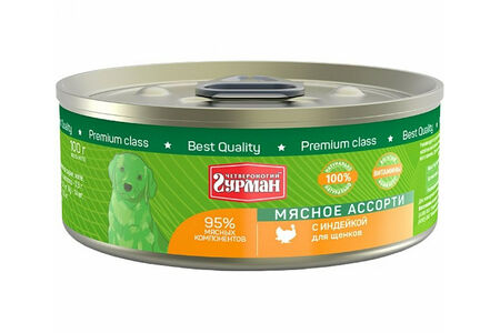 Четвероногий Гурман Мясное ассорти с индейкой для щенков 100 г доставка