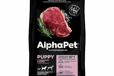Корм сухой AlphaPet Superpremium для щенков, беременных и кормящих собак средних пород, Говядина и рис доставка