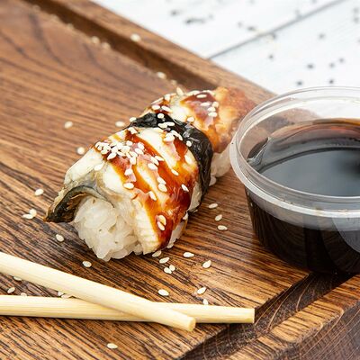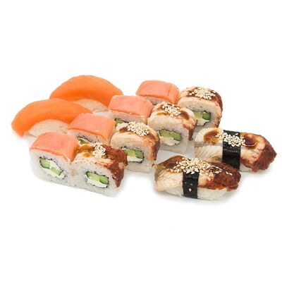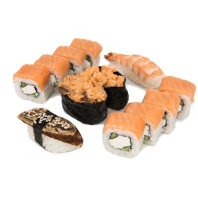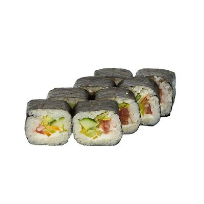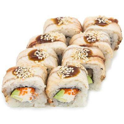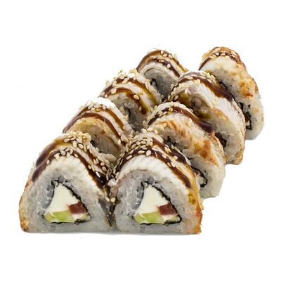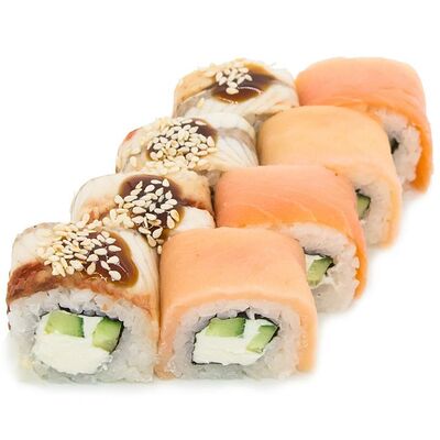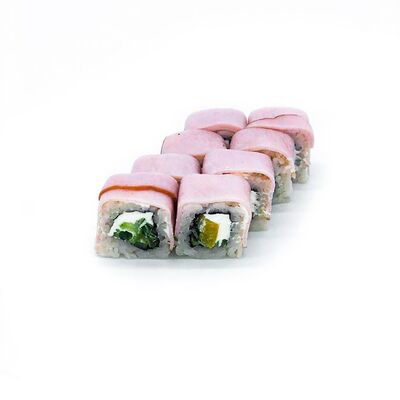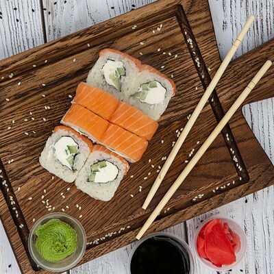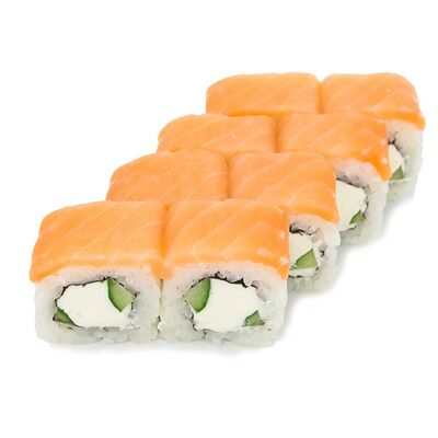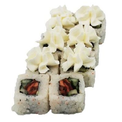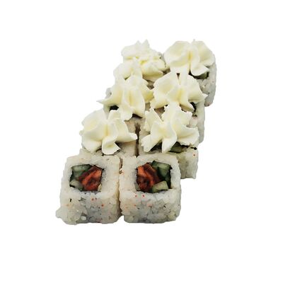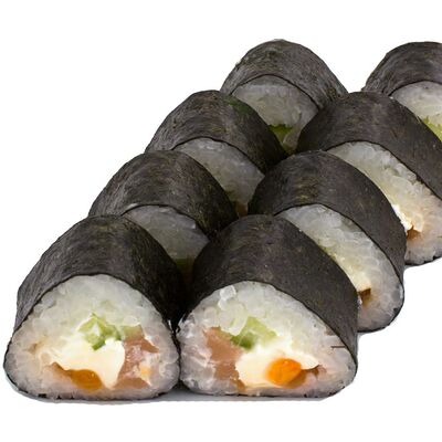 Рис, Нори, Лосось терияки, Огурец, Айсберг, Сыр творожный