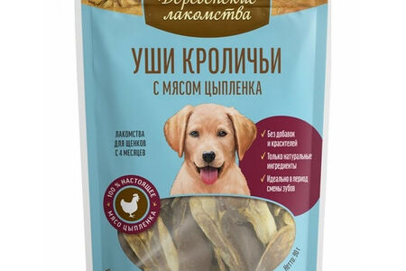 Деревенские лакомства "Уши кроличьи с мясом цыпленка" лакомство для щенков (цыпленок и кролик) доставка