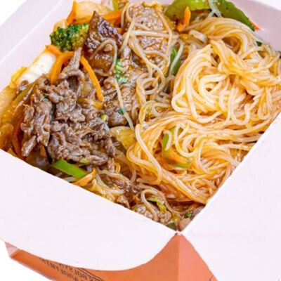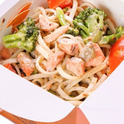 Пшеничная лапша, сёмга, помидоры, брокколи, сливки