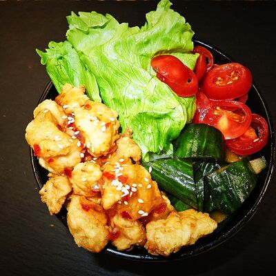 Куриное филе, японская панировка, соус Чили сладкий, кунжут