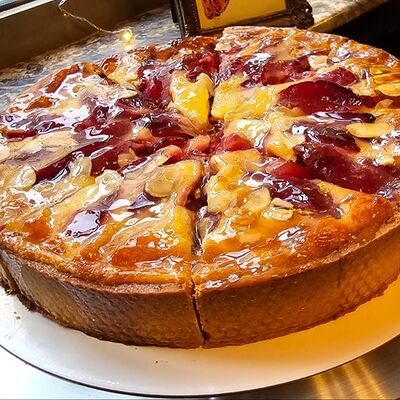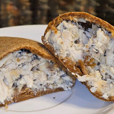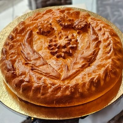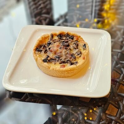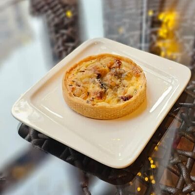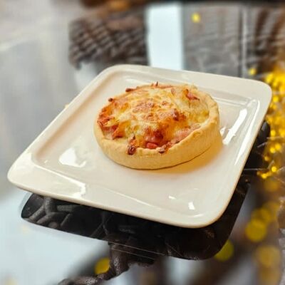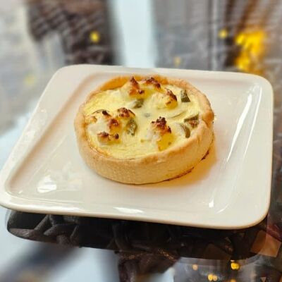Песочное легкое несладкое тесто, куриное филе, сыр голландский 45%, в заливке из куриного яйца со сметаной. Идеальный завтра, обед и легкий ужин