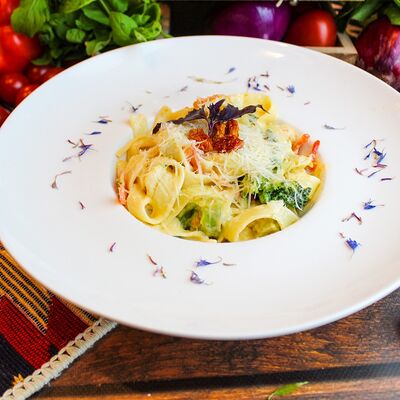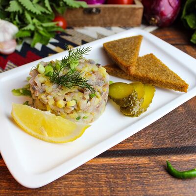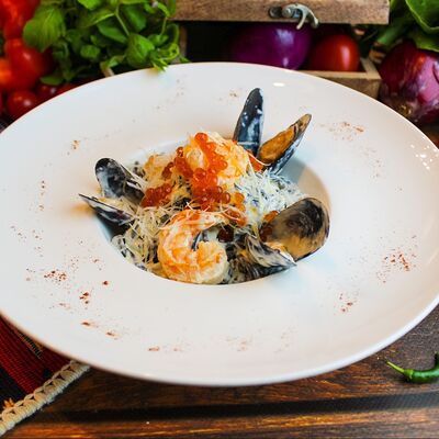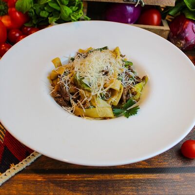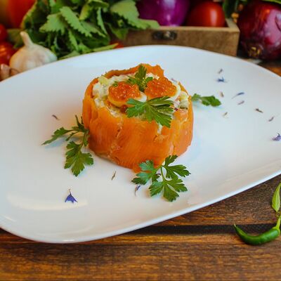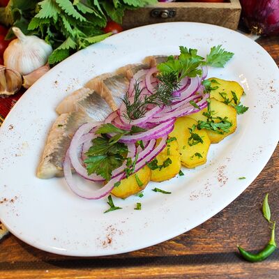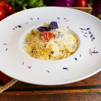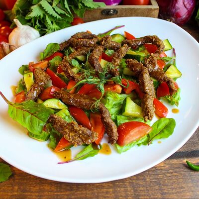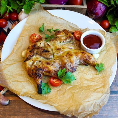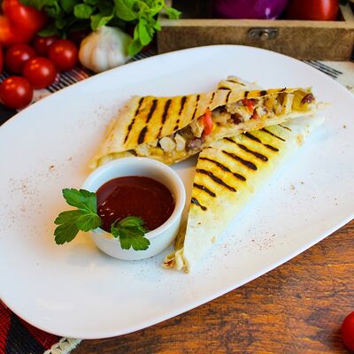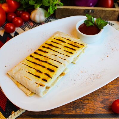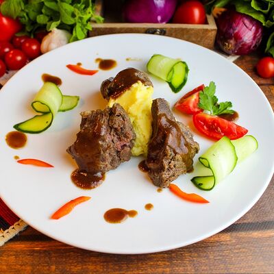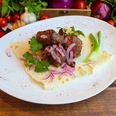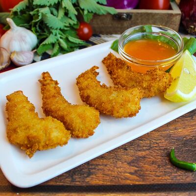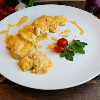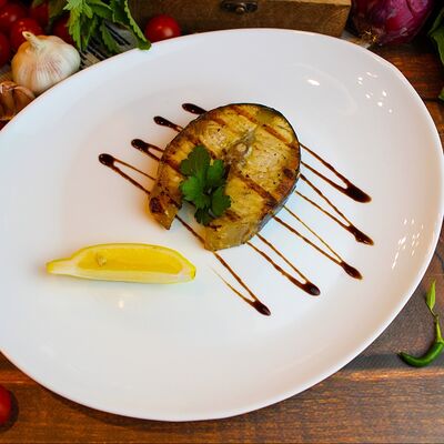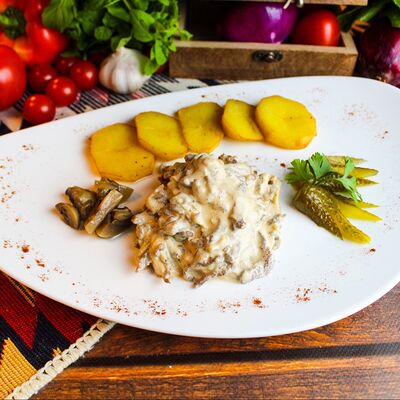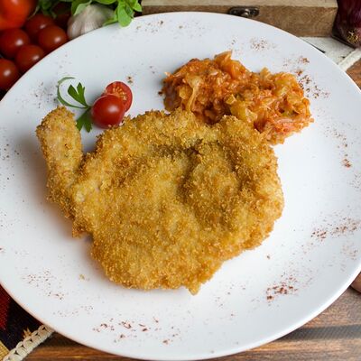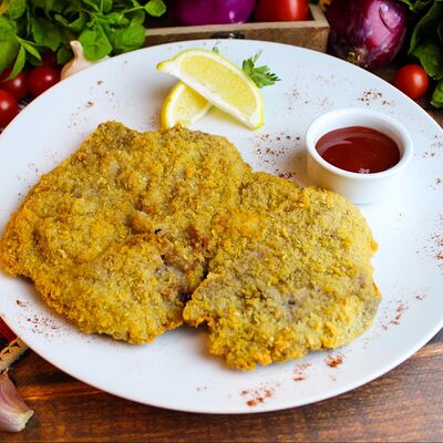 Большого размера очень тонкий шницель из телятины в панировке из муки, яйца и панировочных сухарей, поджаренный до золотисто-коричневого цвета. Подается с лимоном и томатным соусом
