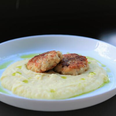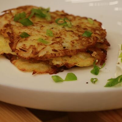 Картофель, лук репчатый, яйцо, мука, соль, перец, лук зеленый, сметана