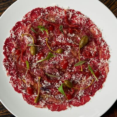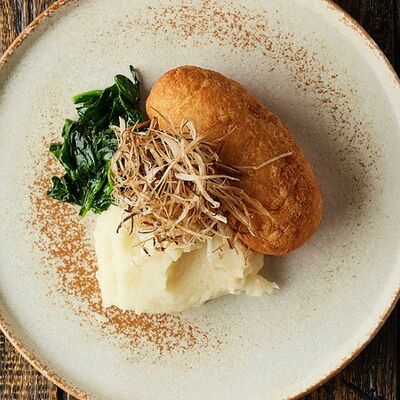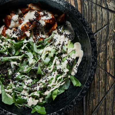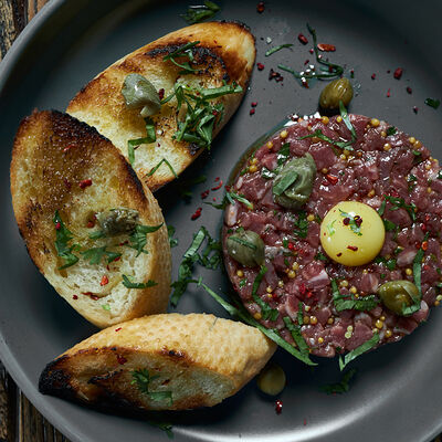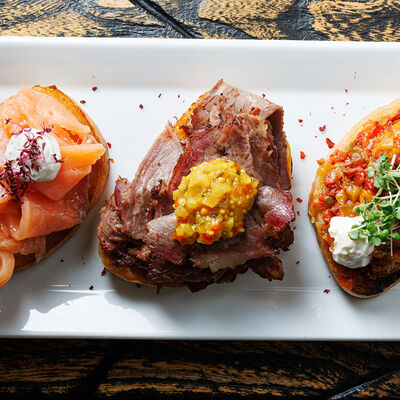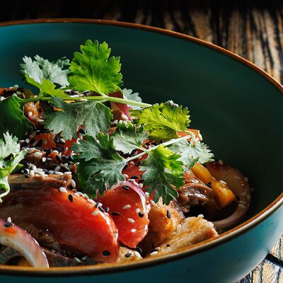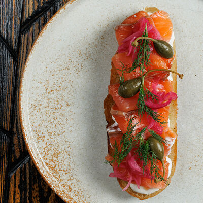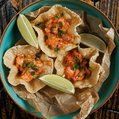 Нежный лосось с авокадо и красным луком, подается с хрустящей тарталеткой