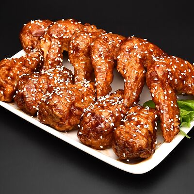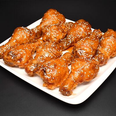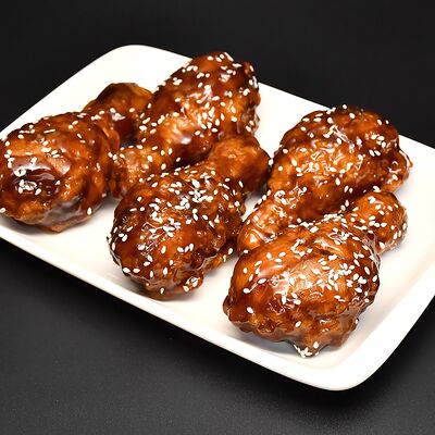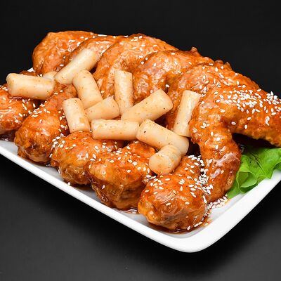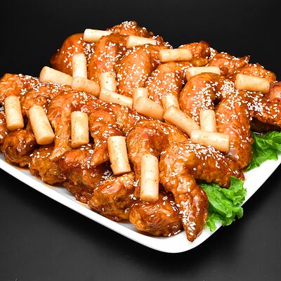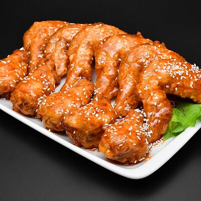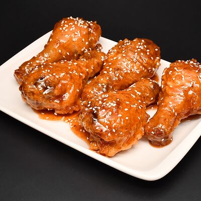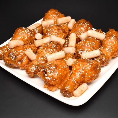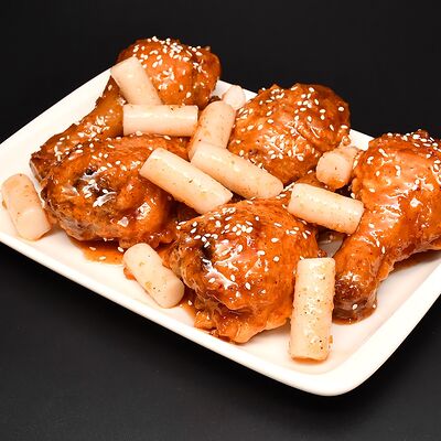 Ножки с рисовыми палочками тток, приготовленные по корейской технологии, обжаренные в хрустящем кляре, подаются в сладко-остром соусе средней остроты. Количество может варьироваться (4-5 шт.)