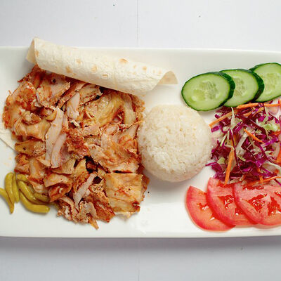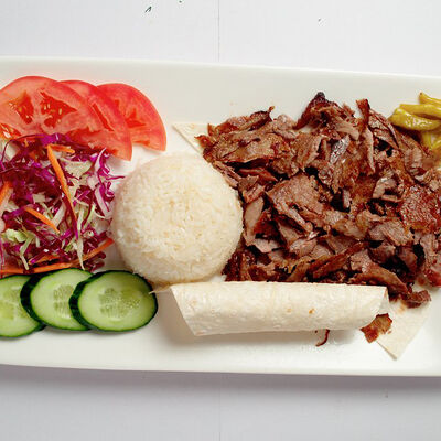 Говядина, огурцы, помидоры, картошка фри, листья салата, морковь, лук