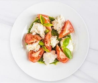 Буратта Гранде, томаты, песто, бальзамический уксус di Modena Igp