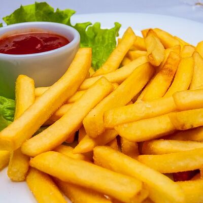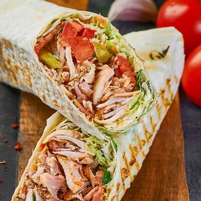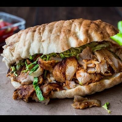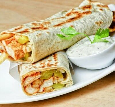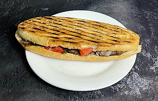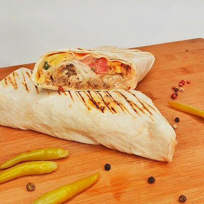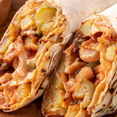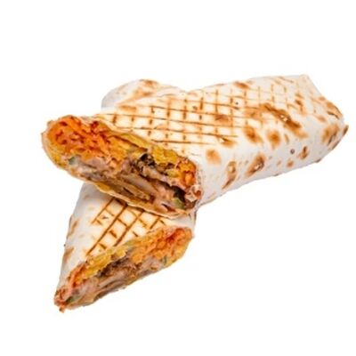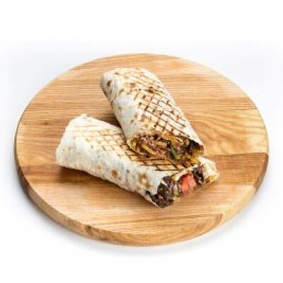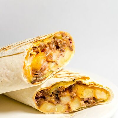 Фирменный соус, фри, говядина, соленые огурцы, фирменный лаваш