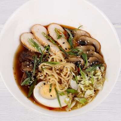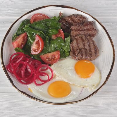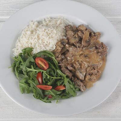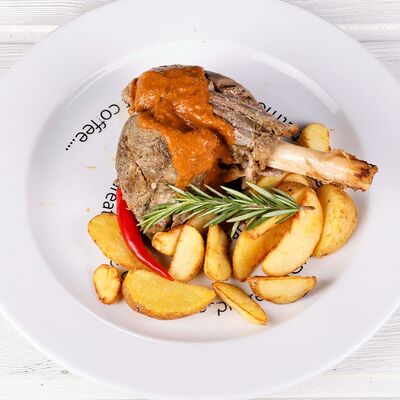 Баранина, шампиньоны, паприка, красный лук, баклажан, кабачок