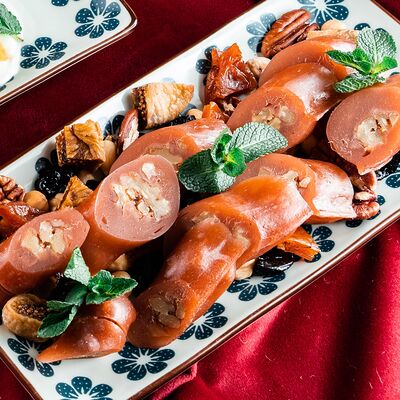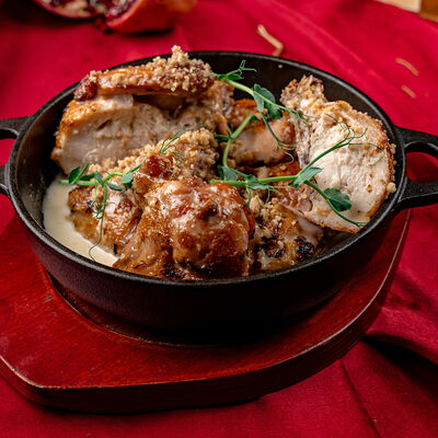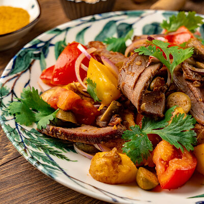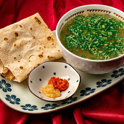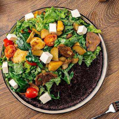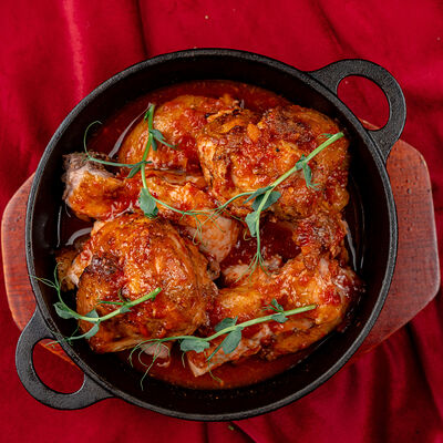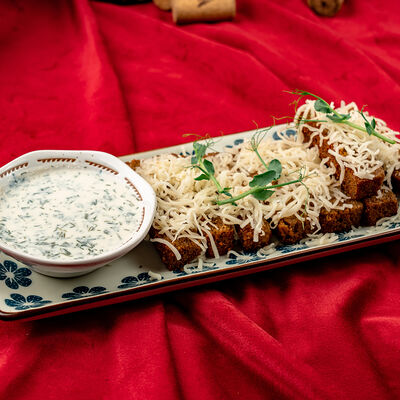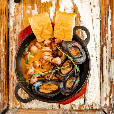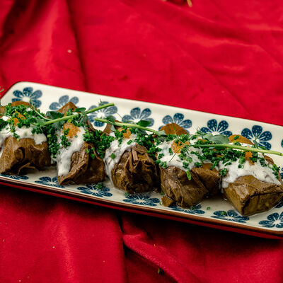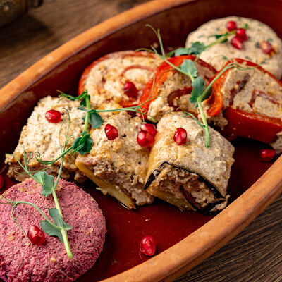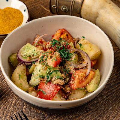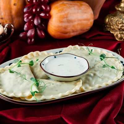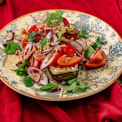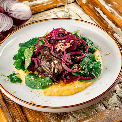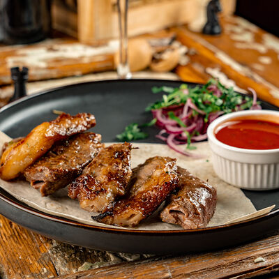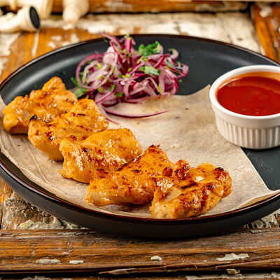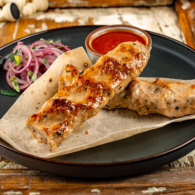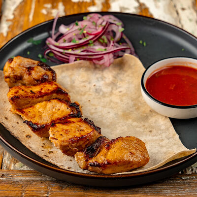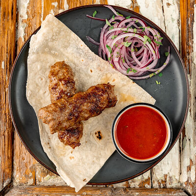 Маринованные шампиньоны, маринованный лук, лаваш, пикантный томатный соус