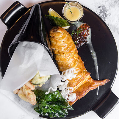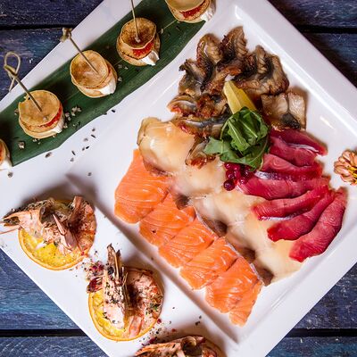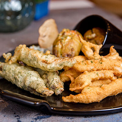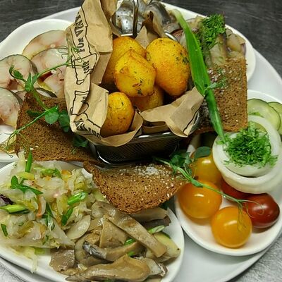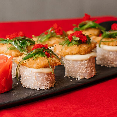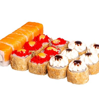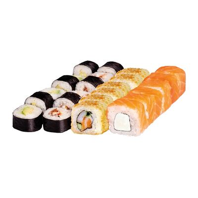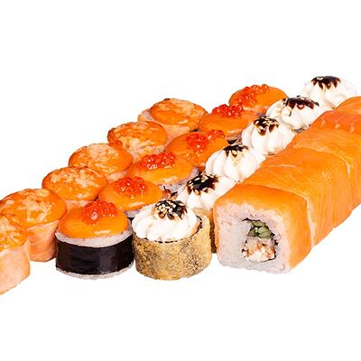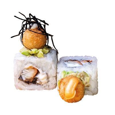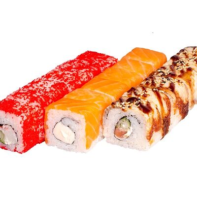 Креветка, огурец, авокадо, сыр, угорь, тобико (6 шт.)
