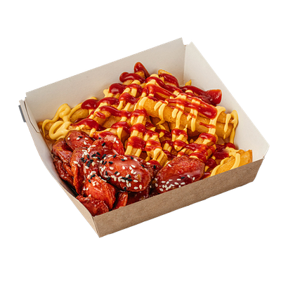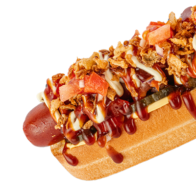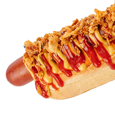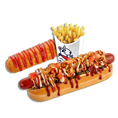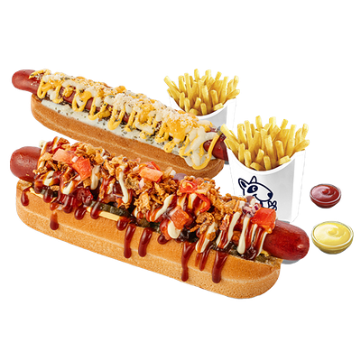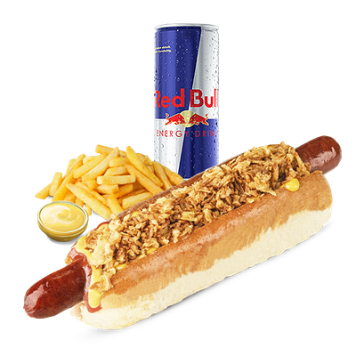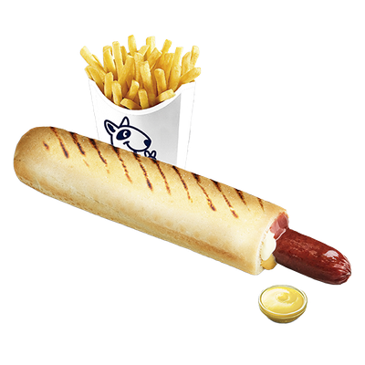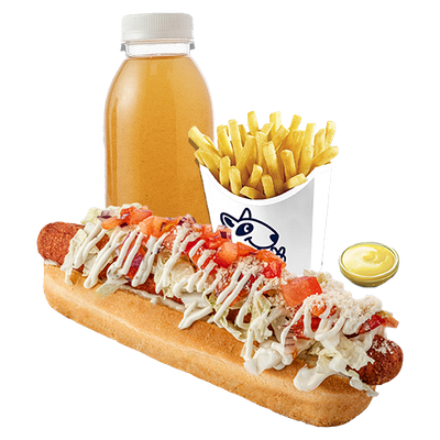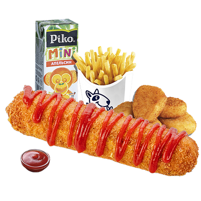 Хот-Дог Монтана, картофель фри, сырный соус 25 гр, кола 0,5 пэт