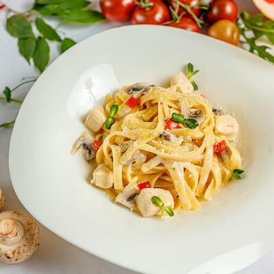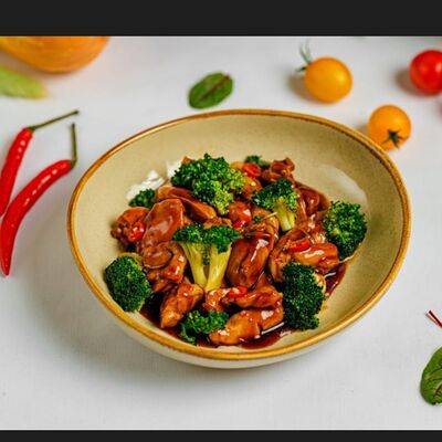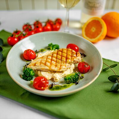 Куриное филе, сыр фета, брокколи, помидоры черри